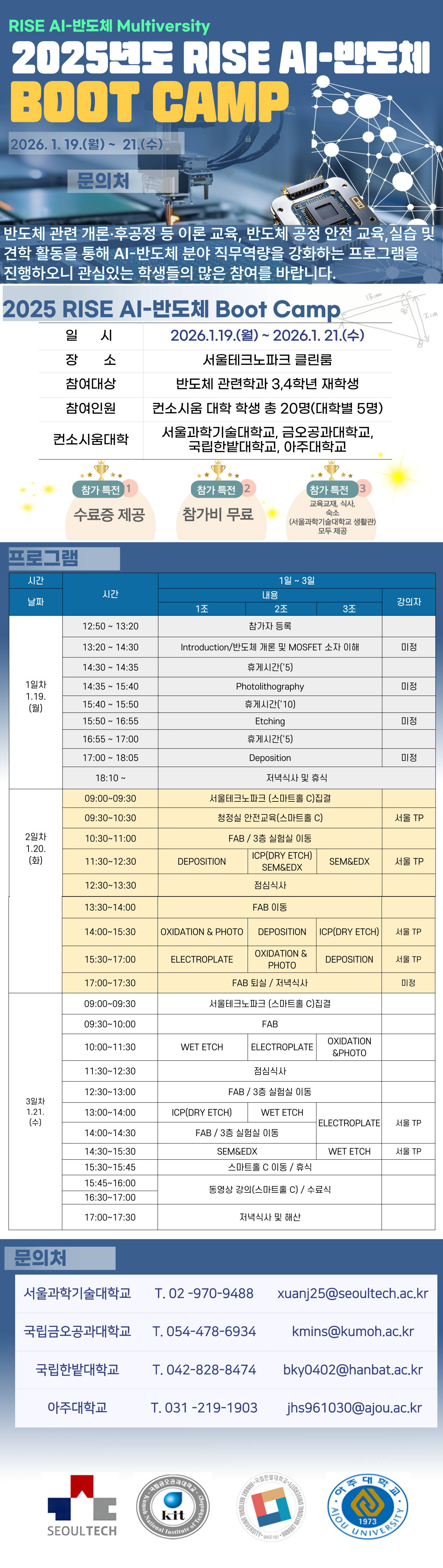 [비교과] (재공지)[RISE] 2025 AI-반도체 Boot Camp 교육생 모집(무료)(~12.21.(일)까지)